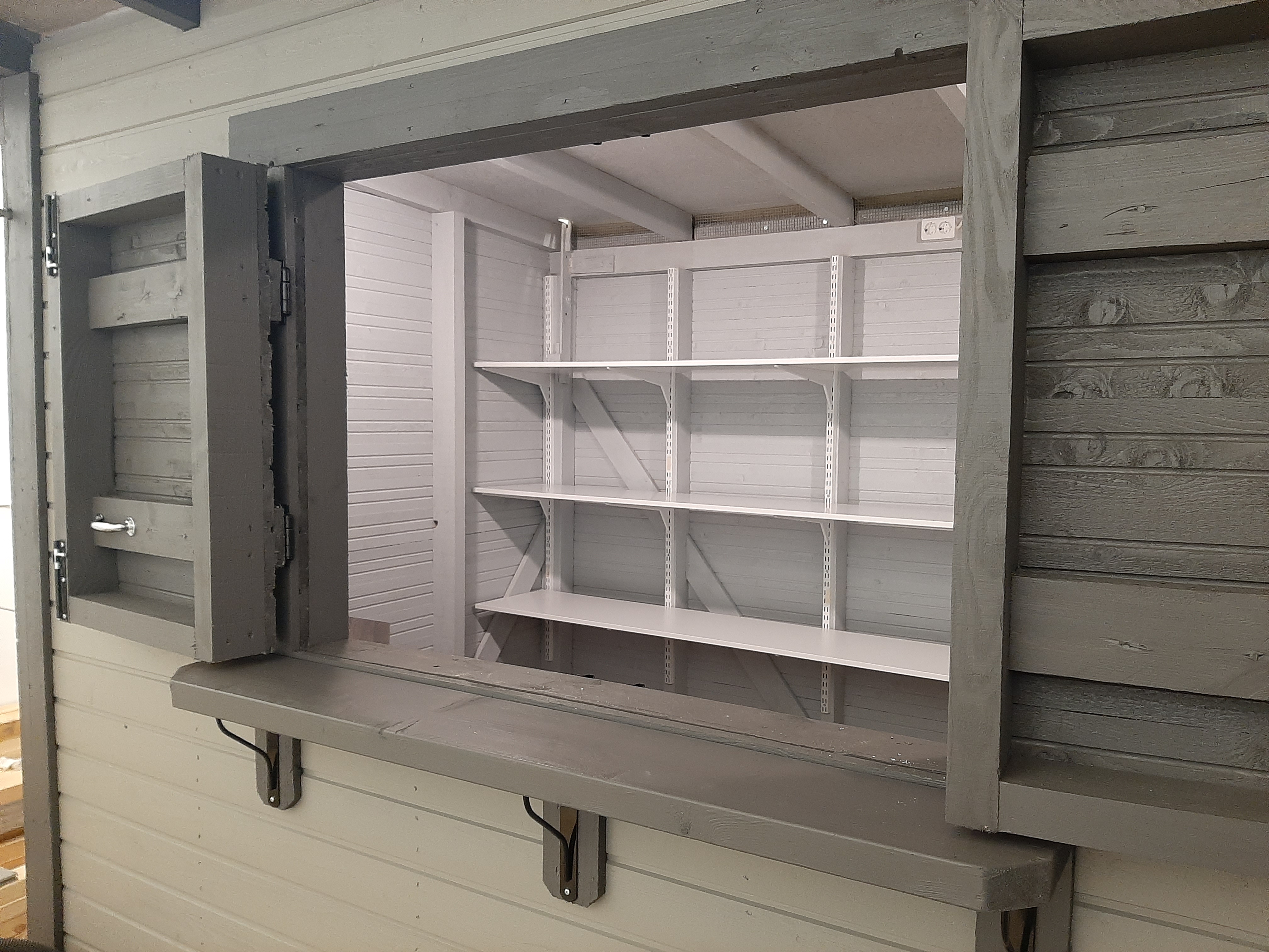 - Takaseinällä hyllyt 3kpl, jotka myös mahdollista poistaa